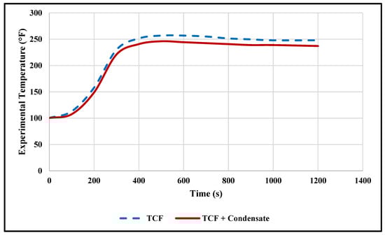 Temperature profiles for pure thermochemical-fluid (TCF) and TCF-condensate system.