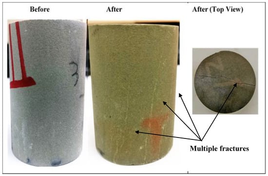 Images of rock sample before and after thermochemical injection. Multiple fractures induced upon thermochemical treatment [25].