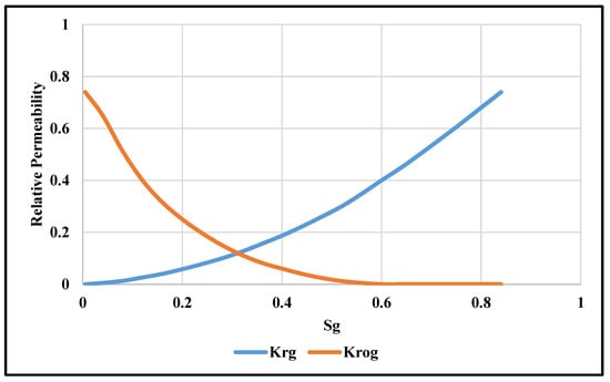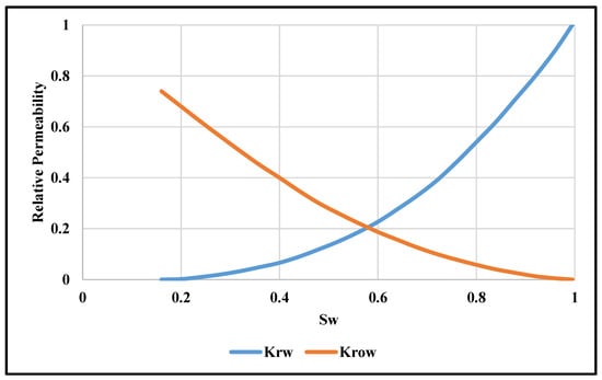 In addition, relative-permeability curves were generated using available correlations in CMG software based on Corey’s model [35]. Figure 9 and Figure 10 summarize the relative-permeability curves used in this work, respectively.