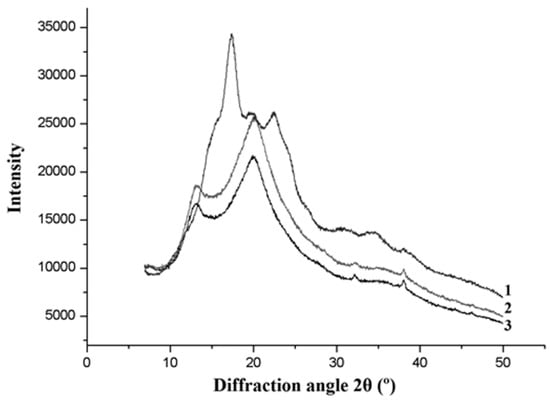 X-ray diffraction patterns of avocado starch extracted by the conventional method (1) and avocado starch extracted by MAE with OC NO–ISO (2) and OC (3).