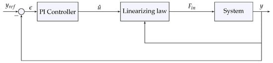 Generic Model Control (GMC) is based on the input–output linearization of the nonlinear dynamics of the system of (4). The main objective is to track a desired output nominal trajectory []. Consider a process described as follows: