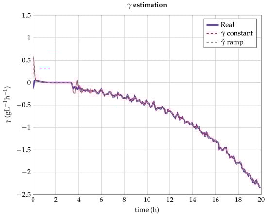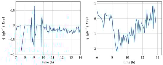 can be estimated using a linear Kalman filter in the same way as presented in [], where the production rate of lactic acid is estimated in continuous mode.