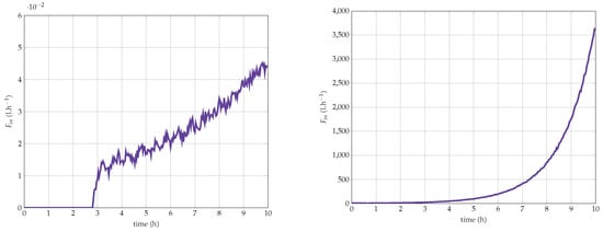As biomass measurements are collected at discrete time (sampling time ), it can be convenient to discretize Equation (37) using, for instance, the Euler scheme: