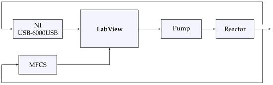 The control and estimation algorithms were coded in Matlab for simulations and implemented online in LabView using shared library and MathScript nodes. The measurements provided by the DCU (pH, pO, temperature, etc.) were monitored and saved by the MFCS software (Sartorius, Germany), and imported to LabView by shared libraries. The biomass signal was measured separately by a data acquisition device from national instruments (NI USB-6000USB Multifunction DAQ Device, National Instruments, USA) and squired in LabView using DAQMax library. Figure 13 shows the diagram of the different devices used for the online implementation.