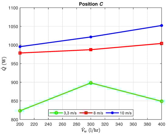 The heat performances and heat transfer coefficients for position C calculated with the original Schmidt correlation (Equation (18)) are shown in Table 11.