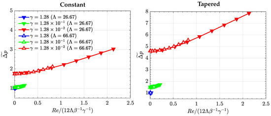 where , , , and the dimensionless pressure gradient is given by the pressure drop ratio defined in Equation (8).