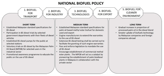 Strategic five thrusts of Malaysia’s national biofuel policy and implementation (Adapted from [24]).