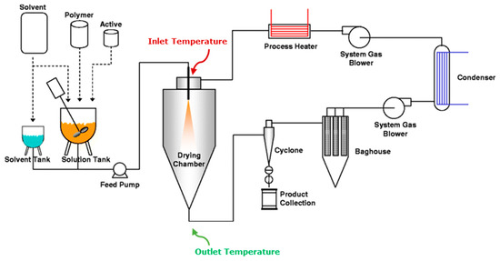- Vehring, R.; Snyder, H.; Lechuga-Ballesteros, D. Spray drying. In Drying Technologies for Biotechnology and Pharmaceutical Applications, 1st ed.; Ohtake, S., Izutsu, K., Lechuga-Ballesteros, D., Eds.; Wiley-VCH Verlag GmbH: Weinheim, Germany, 2020; pp. 179–216. [Google Scholar]