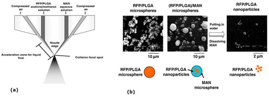 - Ohashi, K.; Kabasawa, T.; Ozeki, T.; Okada, H. One-step preparation of rifampicin/poly(lactic-co-glycolic acid) nanoparticle-containing mannitol microspheres using a four-fluid nozzle spray drier for inhalation therapy of tuberculosis. J. Control. Release 2009, 135, 19–24. [Google Scholar] [CrossRef]