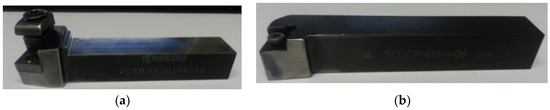 In the experiments, the CSRNR2020K-12 holder was used for the experimental tool, and the SCLCR1616-H09 holder as a tool for preparation of the surface (Figure 3), with a description of the basic properties listed in Table 1. Used tools are made by Kyocera, Hendersonville, North Carolina.