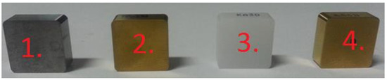 Cutting inserts (1) P20—Sintered carbide; (2) P20 + TiN—Sintered carbide with a standard coat—Korloy company; (3) Al2O3—Cutting ceramics; (4) Al2O3 + TiN—Cutting ceramics with a standard coat—Korloy company.