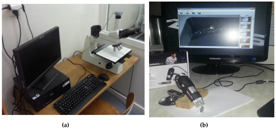 Three devices (Figure 6) were used to measure the wear of cutting tools, and thus the final evaluation of the experiment. The wear generated during machining was observed with the NJC 160 metallographic microscope (Nanjing Jiangnan Novel Optics Co., Ltd., Nanjing, China) and the DigiMicro 2.0 Scale microscope (DNT, New Taipei City, Taiwan).