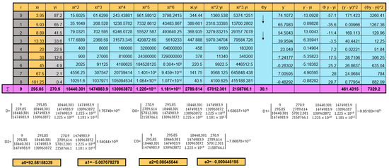 Processing of the measured values using the regression analysis in MathCad 14 software produced by PTC, Boston, MA, United States obtained analytical representations of the obtained waveforms, which are presented in Table 11.