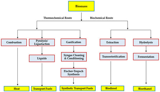 A simplified schematic illustration of two main biofuel production pathways (adapted from [15]).