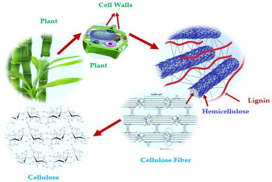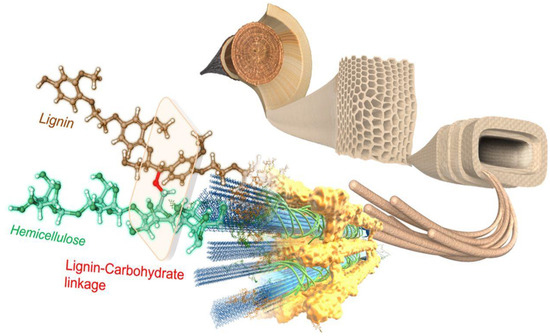 Graphical illustration of lignin, cellulose, and hemicellulose in the plant cell (adapted from [27]).