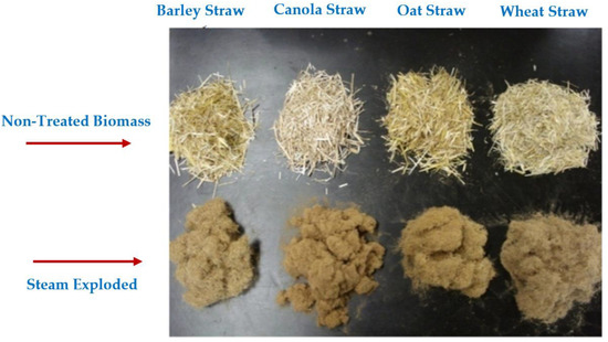 Images of non-treated and steam exploded biomass (adapted from [56]).