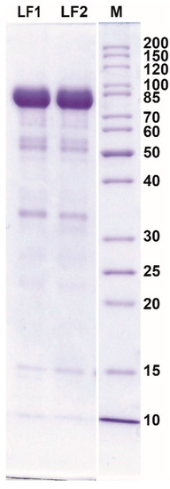 2.3. SDS-PAGE Analysis of Protein Composition of Dried Lactoferrin