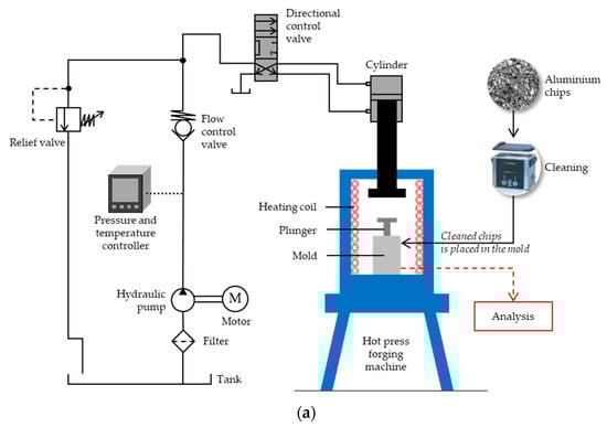 - Ahmad, A.; Lajis, M.A.; Yusuf, N.K.; Wagiman, A. Hot Press Forging as The Direct Recycling Technique of Aluminium—A Review. ARPN J. Eng. Appl. Sci. 2016, 11, 2258–2265. [Google Scholar]