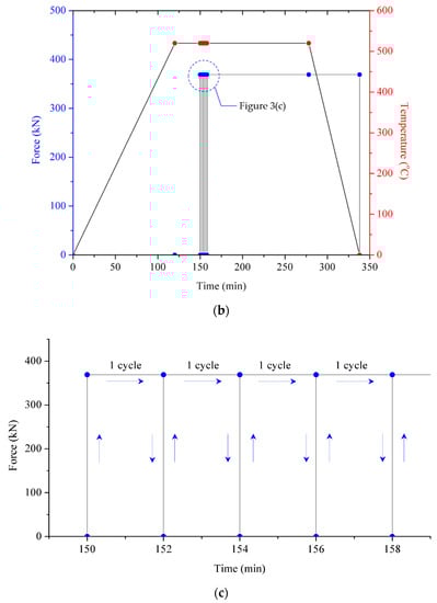 Hot press forging (a) overall process, (b) force-temperature parameter, and (c) time interval during the forging phase [23].