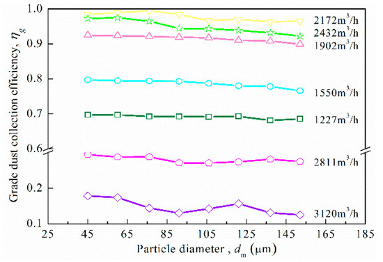 3.2. Influence of Pressure Drop on the Separation Efficiency