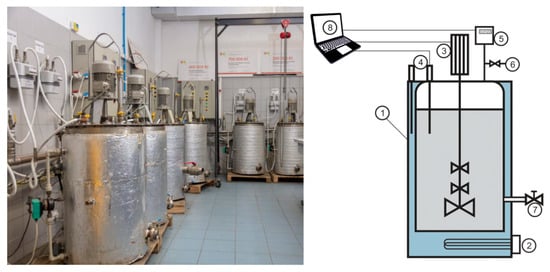In the first day (day 0) of experiments, all fermenters were filled up with 50 L of inoculum (sludge from anaerobic stabilization) and 50 L of primary sludge, as a source of nutrients. Sludge samples were collected at wastewater treatment plant 513,000 PE, Modřice, Czech Republic. WWTP Modřice anaerobic sewage sludge stabilization is operated at mesophilic temperature (34 °C). Anaerobic sewage sludge mixture characteristics were pH = 7.2, dry matter (DM) content 2.64% and organic dry matter (oDM) content 56.90%. Before the biomethanation assay starts, the fermenters were tempered to the desired temperature. Fermenters No. 1, 2 (60 °C ± 0.5 °C), fermenters No. 3, 4 (50 ± 0.5 °C), fermenters No. 5, 6 (40 ± 0.5 °C), fermenter No. 7 and 8 (20 ± 0.5 °C). The retention time (RT) was 21 days, and the low-speed agitator was operated at 60 rpm with 1 minute agitation time alternated with 60 minutes of resting time. During the biomethanation assay quality of the biogas was determined daily using Dräger X-am 5600 gas analyzer (Drägerwerk AG & Co. KGaA, Lübeck, Germany). The concentration of CH4, CO2, H2S and H2 in the produced biogas was measured. The accuracy of the gas analyzer was checked daily by calibration gas mixture 60% CH4/40% CO2 (Drägerwerk AG & Co. KGaA, Lübeck, Germany). Quantity of biogas produced was measured by the gasometer PREMGAS BK G4 (Elster, Lotte, Germany) and calculated to standard conditions (T0 = 273.15 K and p0 = 101,325 Pa).