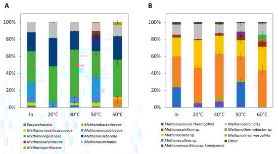 Figure 5B). Finally, at 60 °C, there was the most significant change in the methanogenic archaeal community. The