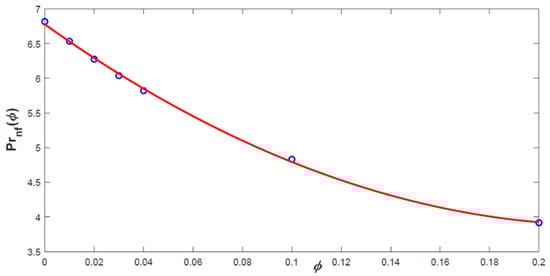 The influence of the nanoparticle concentration on the Prandtl number for Fe3O4- water ferrofluid is depicted in Figure 1. It can be noticed that the addition of nanoparticles will cause a significant decrease in the Prandtl number of the ferrofluid.
