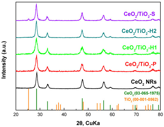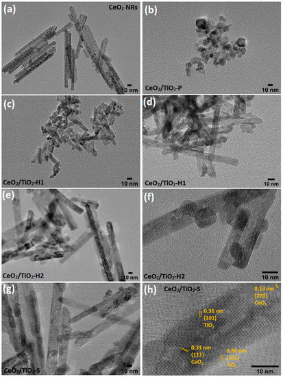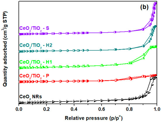 - Tian, J.; Sang, Y.; Zhao, Z.; Zhou, W.; Wang, D.; Kang, X.; Liu, H.; Wang, J.; Chen, S.; Cai, H.; et al. Enhanced Photocatalytic Performances of CeO2/TiO2 Nanobelt Heterostructures. Small 2013, 9, 3864–3872. [Google Scholar] [CrossRef]