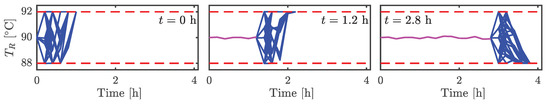The formulation of the MS-SB NMPC problem that is solved at time t ( iteration), where represents the value of the objective function of MS-SB NMPC until the robust horizon reads as Equation (10):