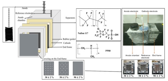 - Sevda, S.; Dominguez-Benetton, X.; Vanbroekhoven, K.; Sreekrishnan, T.; Pant, D. Characterization and comparison of the performance of two different separator types in air–cathode microbial fuel cell treating synthetic wastewater. Chem. Eng. J. 2013, 228, 1–11. [Google Scholar] [CrossRef]