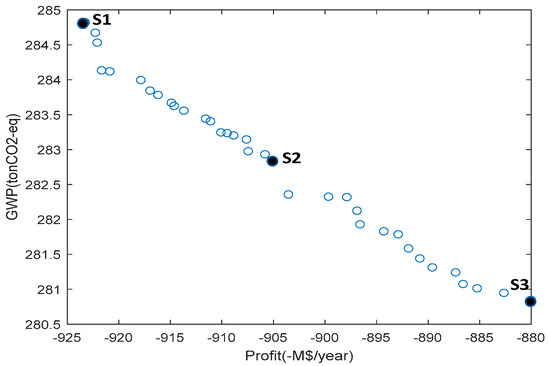 3.1. Case 1: Maximize Profit and Minimize Global Warming Potential