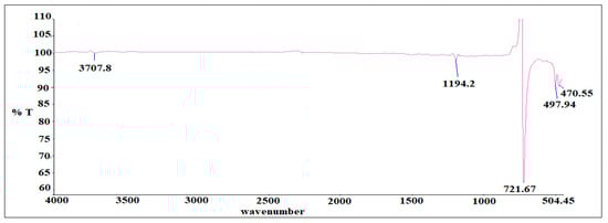 The second decomposition region that occurred at 210 °C to 510 °C could be regarded as the major component of the surfactant. In comparison with the IR curve in Figure 6, a few peaks that belonged to the significant functional group in the surfactant appeared at this temperature region. Some of the functional groups like the carbonyl group from amide and carboxylate had been broken down into the free carbonyl group of C=O, as can be seen at the frequency of 1704 cm−1 with some other alkanes peaks, suggesting that the major surfactant component was still intact and its structure retained in this temperature region [17]. Another decomposition from the surfactant was observed in the range 530 °C to 690.3 °C. As can be seen in IR chromatogram for curve 3 (Figure 7), this decomposition could be attributed to the long carbon chain of the surfactant, due to the decomposition of the alkane group and some residue amine as a breakdown component of the amide from the surfactant. It also indicated that the amide was intact in the surfactant tail and was still present at high temperatures. Beyond the temperature of 690 °C, no IR peaks were recorded, indicating that the surfactant had been completely burnt off, leaving the crucible clean without any residue.