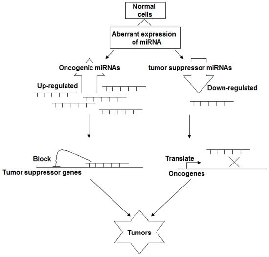 The biological function of miRNAs: tumor suppressors or oncogenic miRNAs.