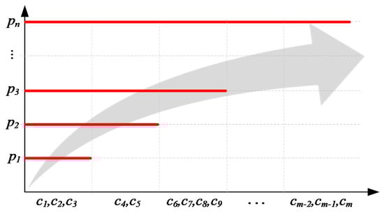 From the perspective of the matrix analysis, we should determine the correlation properties of the features that are appropriate for subsequent levels . It is natural to include the following form, , where is a set of features specific to a given level , where . For example, from Figure 3, . However, one should consider a case where the level does not contain all the features of level . In other words, if level contains a set of features , is it possible that the following situation may occur: