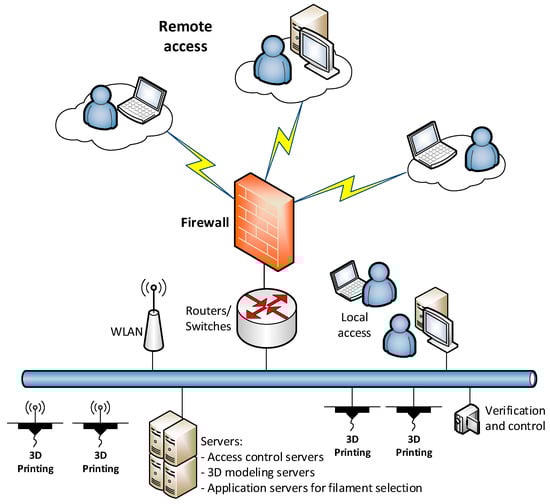 Incremental production is now widely used in production [1,2], scientific [3,4], didactic [5,6] and medical [7] environments. The present examples relate to the use of 3D printing both in SMEs and in large enterprises. Of course, the methods and technologies used in these separate environments may differ, but they share common goals, such as increasing the efficiency, competitiveness and flexibility in the design and production of various components. The above-mentioned papers also refer to the possibility of combining additive and sub-additive technologies within common business and production processes. Additive technologies are fundamentally different from those of traditional production. Since these technologies constitute a relatively new approach, on the one hand, they require considerable research (e.g., in the field of materials, technological processes, etc.); on the other hand, their features and properties enable their use by scientists to develop new innovative components and products, including for medicine. This applies to both organ models and dedicated replicas. The didactics area mentioned previously holds great promise for the use of additive technologies through the possibility of integrating knowledge for creative and demanding projects. At present, 3D printing technologies are an indispensable element of many design and manufacturing processes in modern industry, including Industry 4.0. The world of manufacturing, which focuses on the conceptual, design, test and laboratory environments, as well as the production of all components, has undergone sudden and dynamic changes. In the current era of globalization, individual stages and their individual components can be implemented in geographically remote locations. The same applies to human resources, such as a team of specialists carrying out specific research, development work, or learning the basics of rapid prototyping. A person’s location (i.e., their place of work, study or life) is playing an increasingly less important role in his or her professional work or participation in courses. From this point of view, the concept of remote work seems to be crucial [8,9,10,11]. The work in [8] deals with issues related to the efficiency of remote work, which is particularly important in the current pandemic situation, and is related to the dissemination of this form of work within industry. The results described in [9] indicate that remote work is positively perceived by employees in the context of productivity and job satisfaction. The work in [10] compares the use of communication channels in remote work and in work based around a central office. At the same time, the authors indicate the threats that companies whose employees work remotely have to face. The authors in [11] propose a new approach for improvement in the area of designing remote work systems to improve their efficiency. Thus, employers and employees are ready for remote work and are aware of the risks associated with it. Companies can, therefore, benefit from the expertise of workers without requiring them to be physically present in a given geographical location. This mechanism can shorten the time needed for designing and implementing new products on the market and reduce the logistics costs related to a company’s operation. Taking into consideration the achievements of modern technology in the field of IT tools, devices and means of communication, the remote implementation of research is at our fingertips. Of course, this approach has its own advantages and disadvantages.