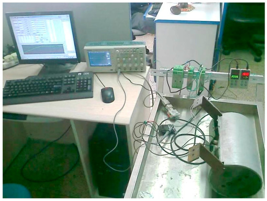 As to an existing practical application of the E-PID and F-PID system, a heating control system of an oil production process is shown in Figure 3. (1) The three small green devices in the middle-right of Figure 3. are PID controllers. The small white devices on the right side are display and setting devices, which are connected to the sensors in the heating object and the PID controller. The computer is connected to the PID controller by an RS-485 data cable, which is designed to read the temperature of the controlled heating equipment and adjust the control parameters in each adjustment cycle. The cylindrical device on the right is the heating device; the input of this heating device is connected to the output of the PID controller to get the power voltage, which is monitored by the oscilloscope in the middle-left Figure 3.