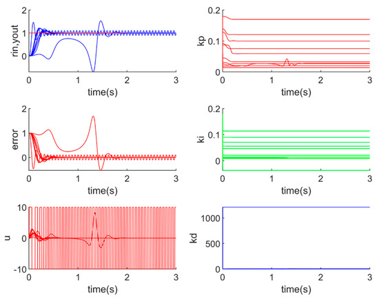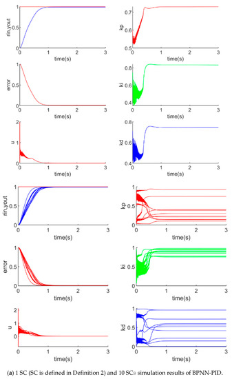 Comparing Figure 11 with Figure 13, the RBFNN-S-PID system is much more stable: (1) All the RBFNN-S-PID results are convergent (finally stabilized); (2) RBFNN-S-PID has fewer disadvantages.