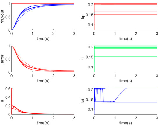 is the change ratio at time t. The control parameters of EA-PID are calculated as Equations (15)–(17):