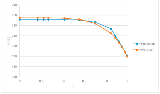 To the knowledge of the authors, there are no experimental data of flat sheeting extrusion die for validation. Therefore, the data provided by Wei and Leo [18] for the non-isothermal flow of polymer melt in a pipe were considered for validation. Figure 5 shows the comparison of temperature profiles for both the simulation and Wei and Leo’s analytical equation. An average error of 1.54 °C suggests the validity of the computational fluid dynamics model that is used for next sections.