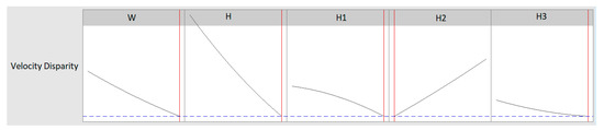 By minimizing this equation, an optimal point where velocity disparity is minimum is obtained. At the optimal point, these parameters (H, W, H1, H2, and H3) are found to be 6.19, 44.56, 204.63, 95.27, and 59.7, respectively.