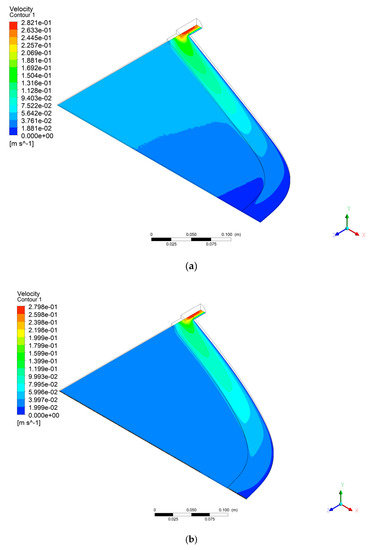 Velocity distribution in (a) the initial die and (b) optimized die.