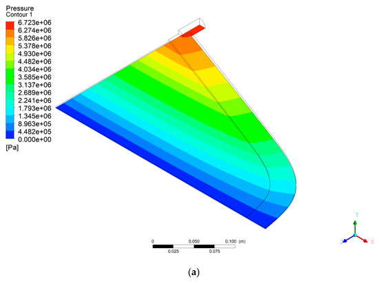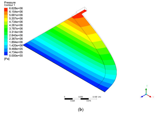 Pressure distribution for (a) the initial die and (b) optimized die.