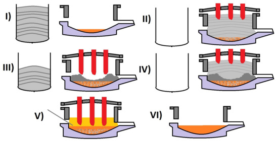 - Köhle, S.; Hoffmann, J.; Baumert, J.; Picco, M.; Nyssen, P.; Filippini, E. Improving the Productivity of Electric arc Furnaces; European Commission: Luxembourg, 2003; ISBN 92-894-6136-5. [Google Scholar]