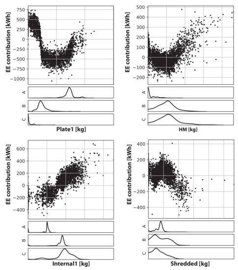 The second study used response graphs to investigate the total EE prediction response by each scrap type in the first and second baskets [4]. However, a response graph only displays the total EE prediction when varying one single input variable and does not reveal the specific contribution by each input variable.