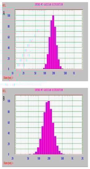 Figure 6. Particle size distribution of the hydrated dPNP at storage day (A) 1, (B) 7 and (C) 15.