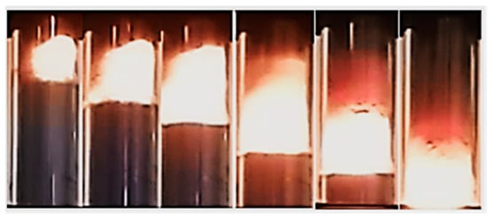 - Salgansky, E.A.; Kislov, V.M.; Glazov, S.V.; Zholudev, A.F.; Manelis, G.B. Specific features of filtration combustion of a pyrolized solid fuel. Combust. Explos. Shock Waves 2010, 46, 528–532. [Google Scholar] [CrossRef]