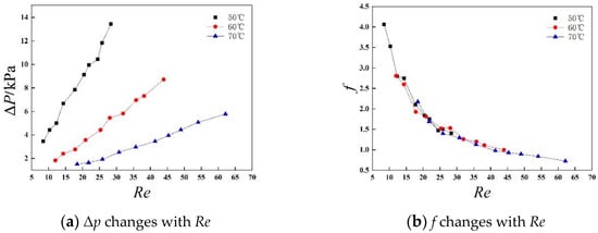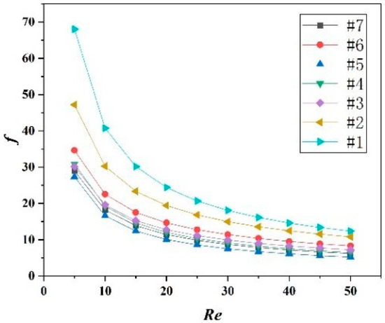 In Table 5, the error of f = a * Re−0.67 is slightly larger than f = a * Re−b, but it still meets the engineering requirements, indicating that the f = a * Re−0.67 fitting method is feasible.