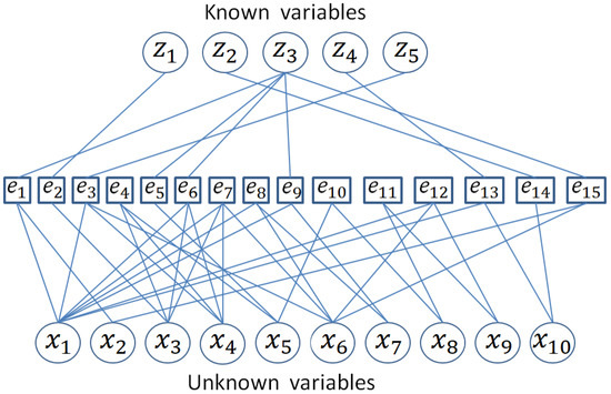 To show these concepts, an academic model is presented. , and these fifteen equations relate unknown variables and known variables. The representation in a bipartite graph for this system is shown in Figure 1.