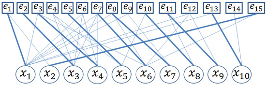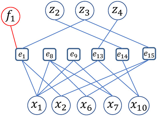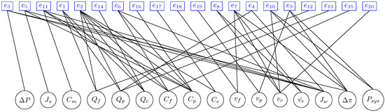As an example, for the academic model in Figure 1, if a fault is included in Equation (1), using Definition 7, there are 53 FMSO sets. Figure 3 shows the bipartite graph of the first FMSO set .
