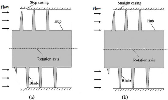 Schematics of the studied casings: (a) Step casing; (b) straight casing.